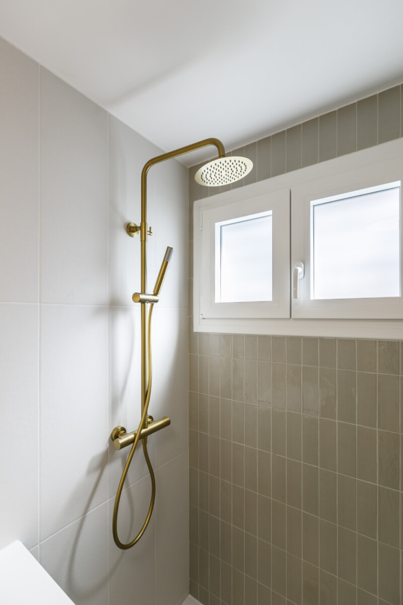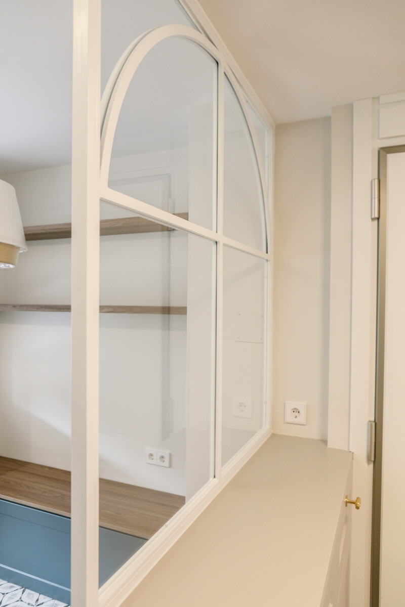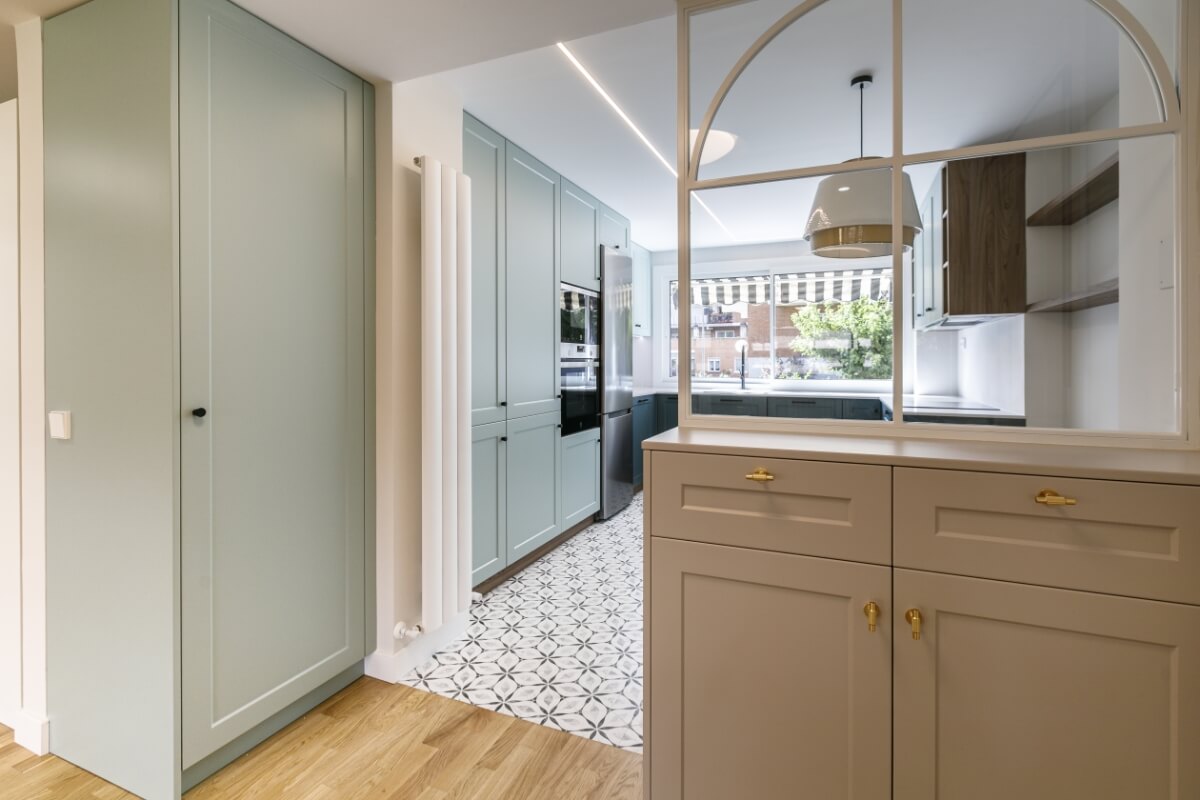 Toda la carpintería del piso es en madera lacada en blancos y pasteles con los herrajes y manillas doradas.