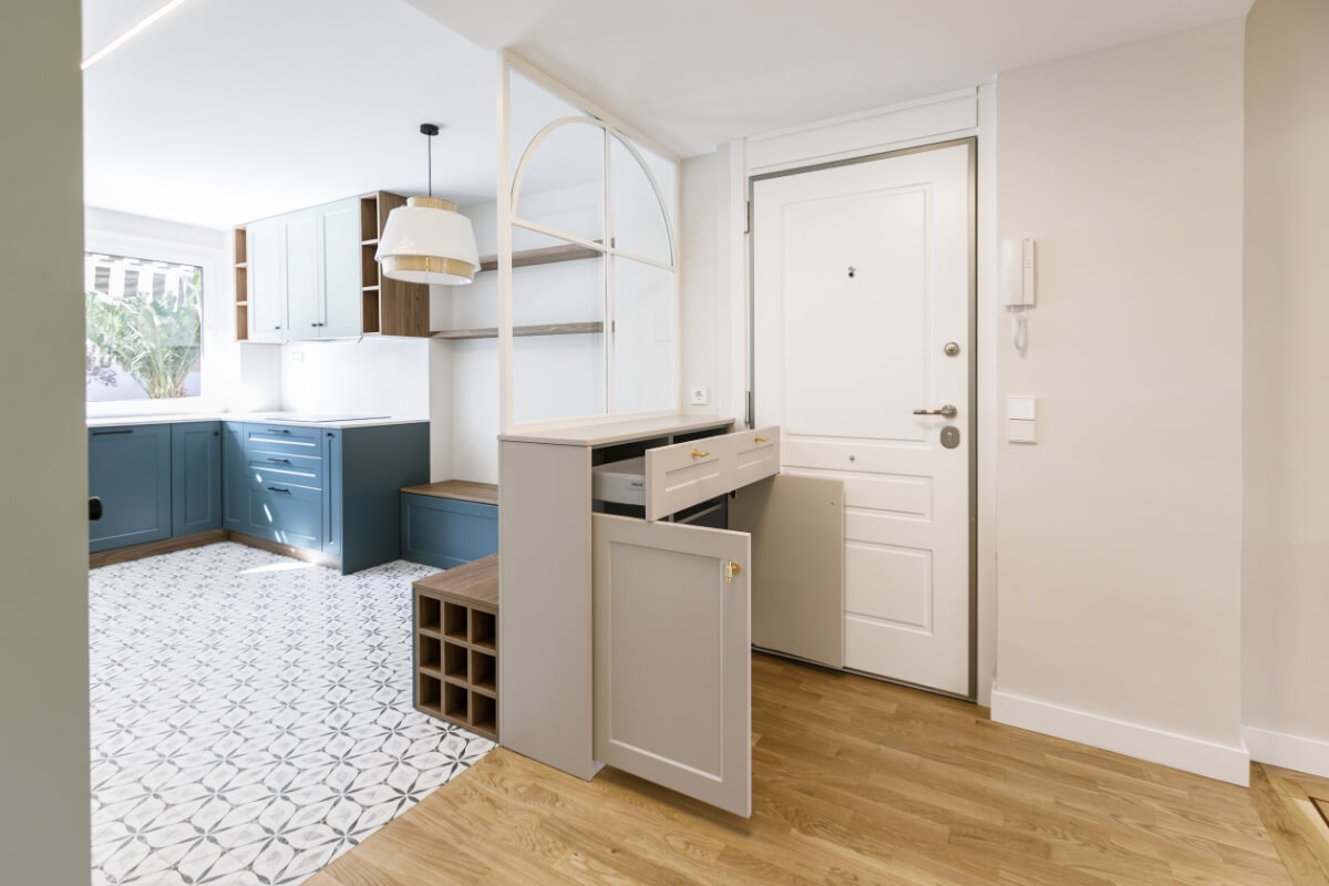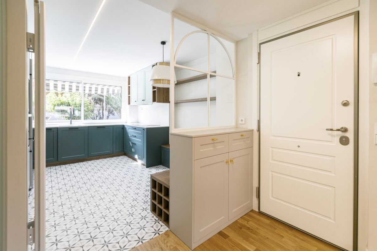 Es una reforma integral de piso de 115m2, zona Chamartín. Se redistribuyen por completo todos los espacios.