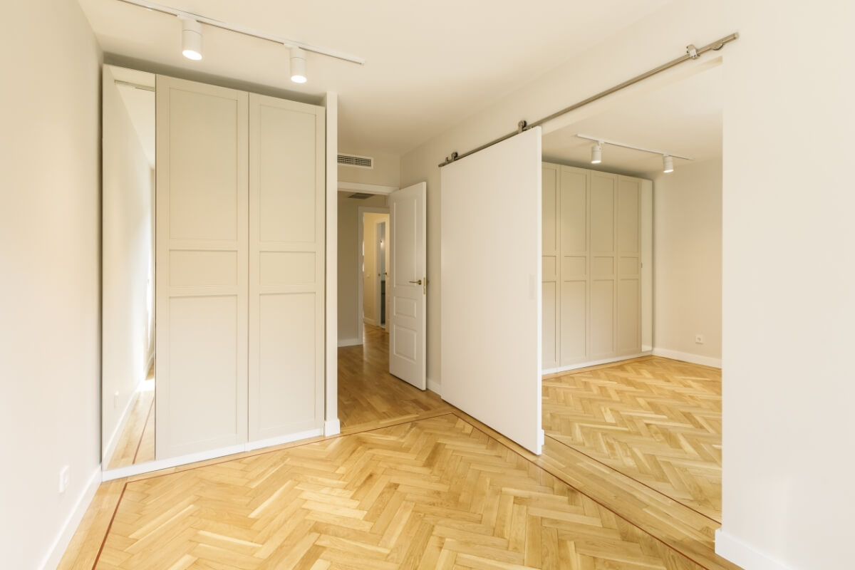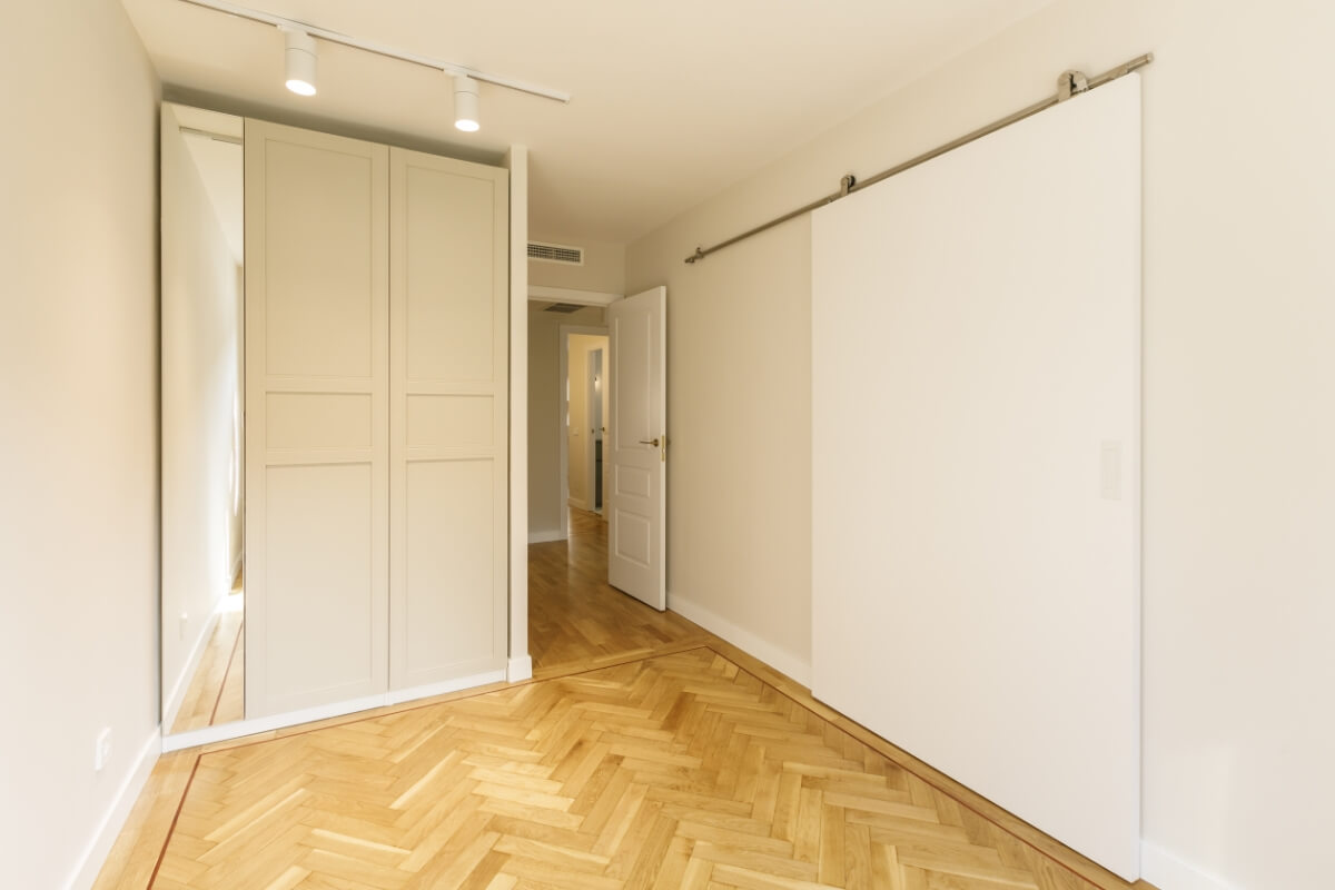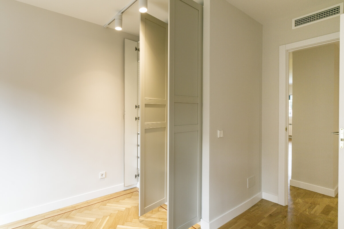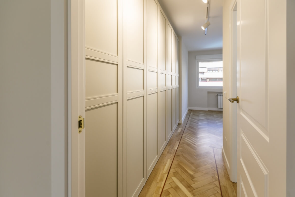 Las puertas de los armarios van a juego con las puertas de paso y los interiores van en un acabado texturizado muy elegante.