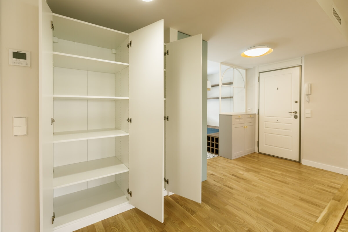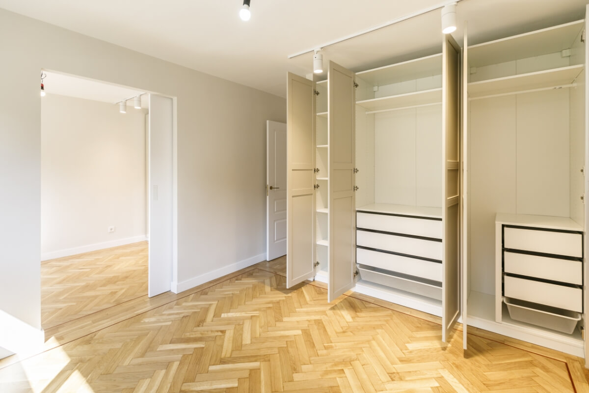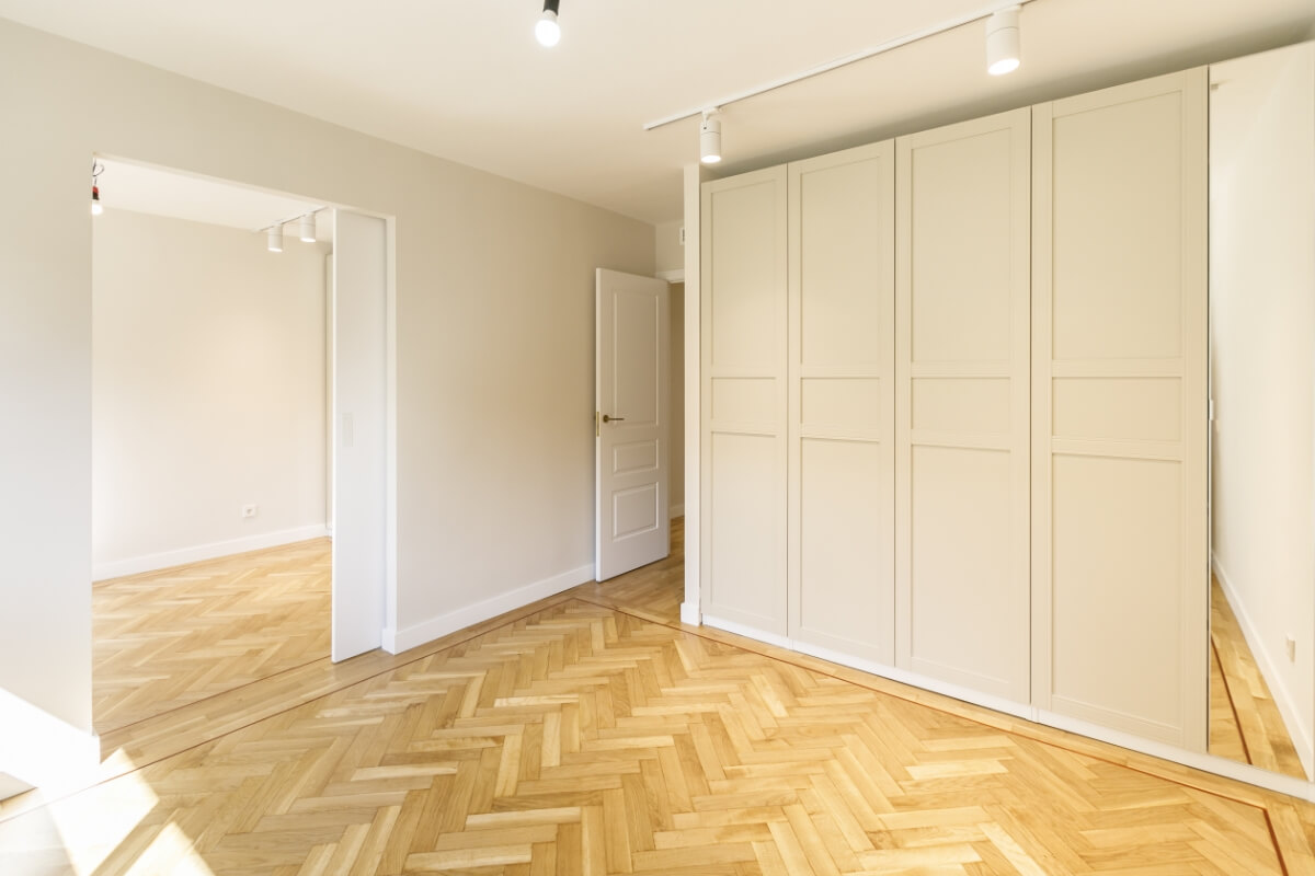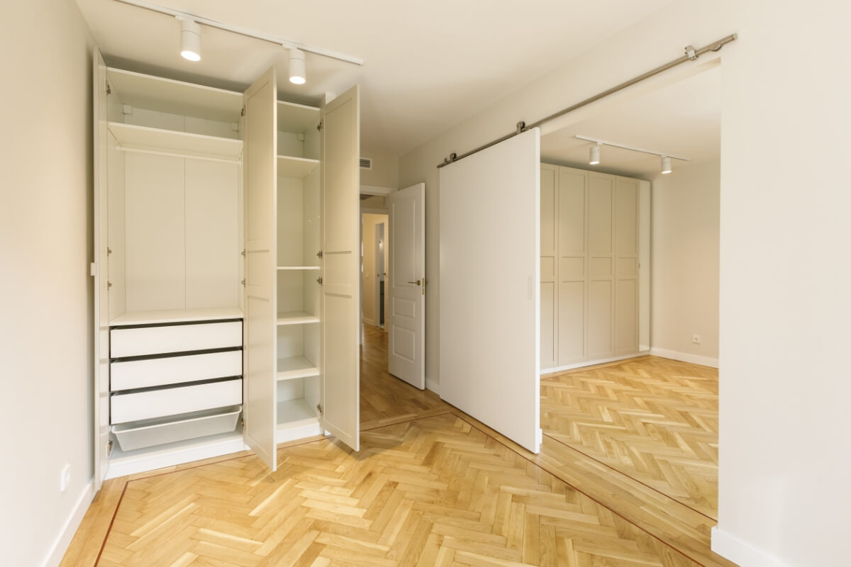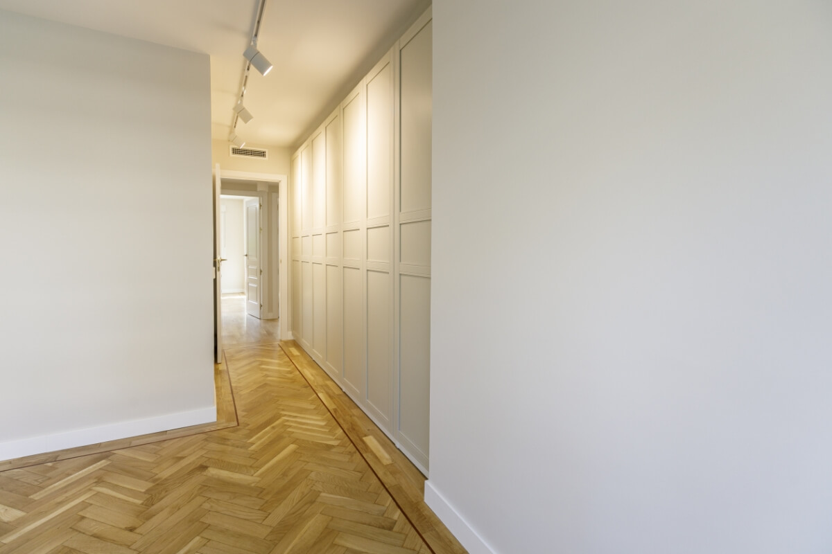 Las puertas de los armarios van a juego con las puertas de paso y los interiores van en un acabado texturizado muy elegante.