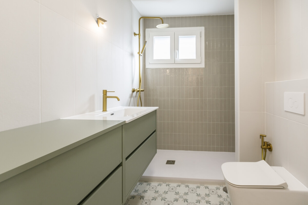En el suelo de la vivienda va con parquet de roble y jatoba barnizado al agua. Los baños y cocina tienen una presencia con mucha fuerza y color.