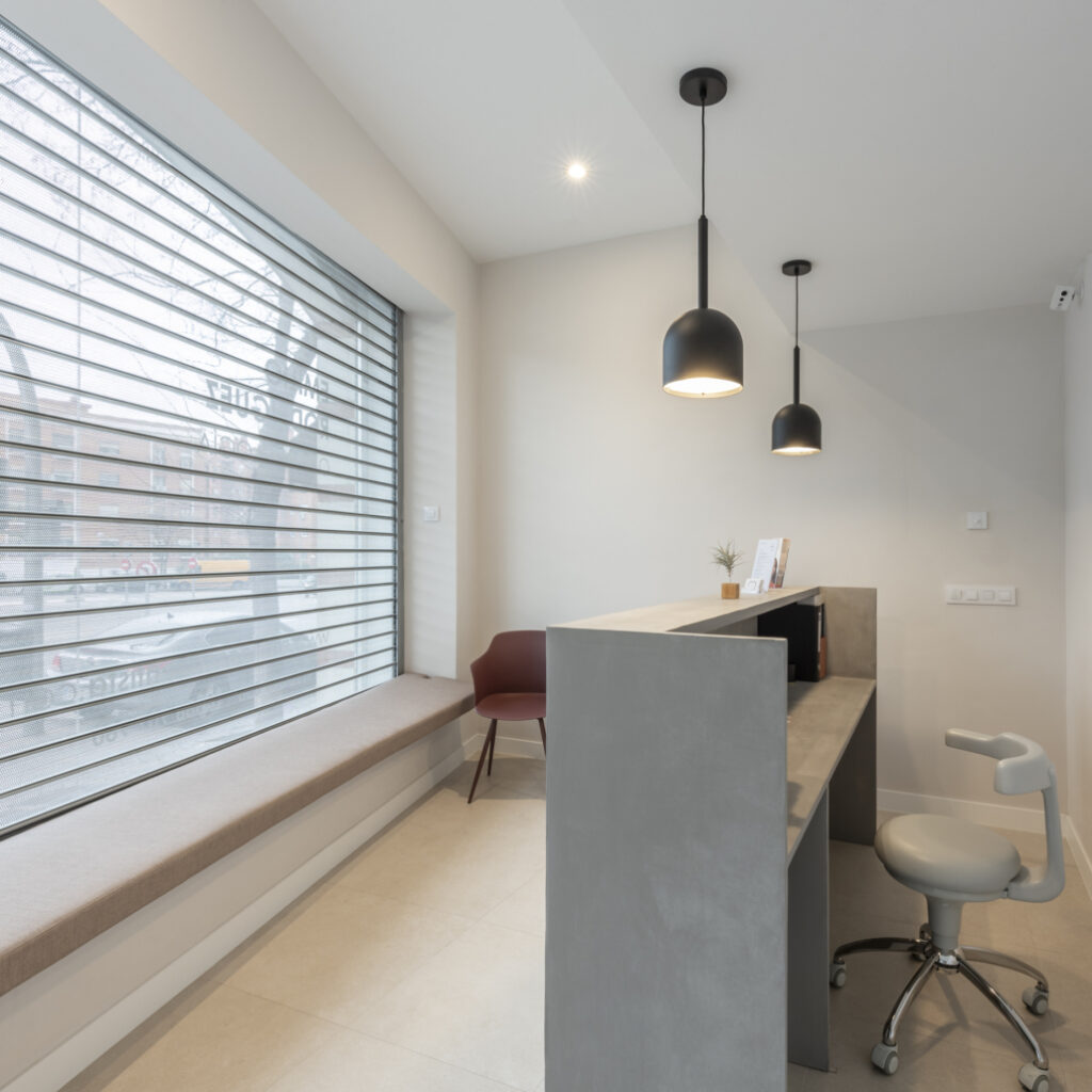 - Iluminación: la iluminación es imprescindible para crear un ambiente acogedor y confortable para tus pacientes. Debes equilibrar adecuadamente la luz natural y artificial para cada área de la clínica. Generalmente, se utiliza iluminación cálida en la recepción y en la sala de espera para crear un ambiente relajante, mientras que en los gabinetes se prefiere la luz fría por su claridad y precisión.